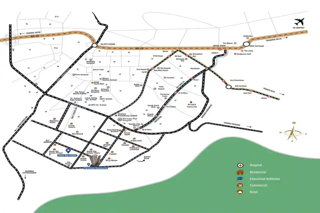 Location Of Location Of Anant Raj The Estate Residences Gurgaon